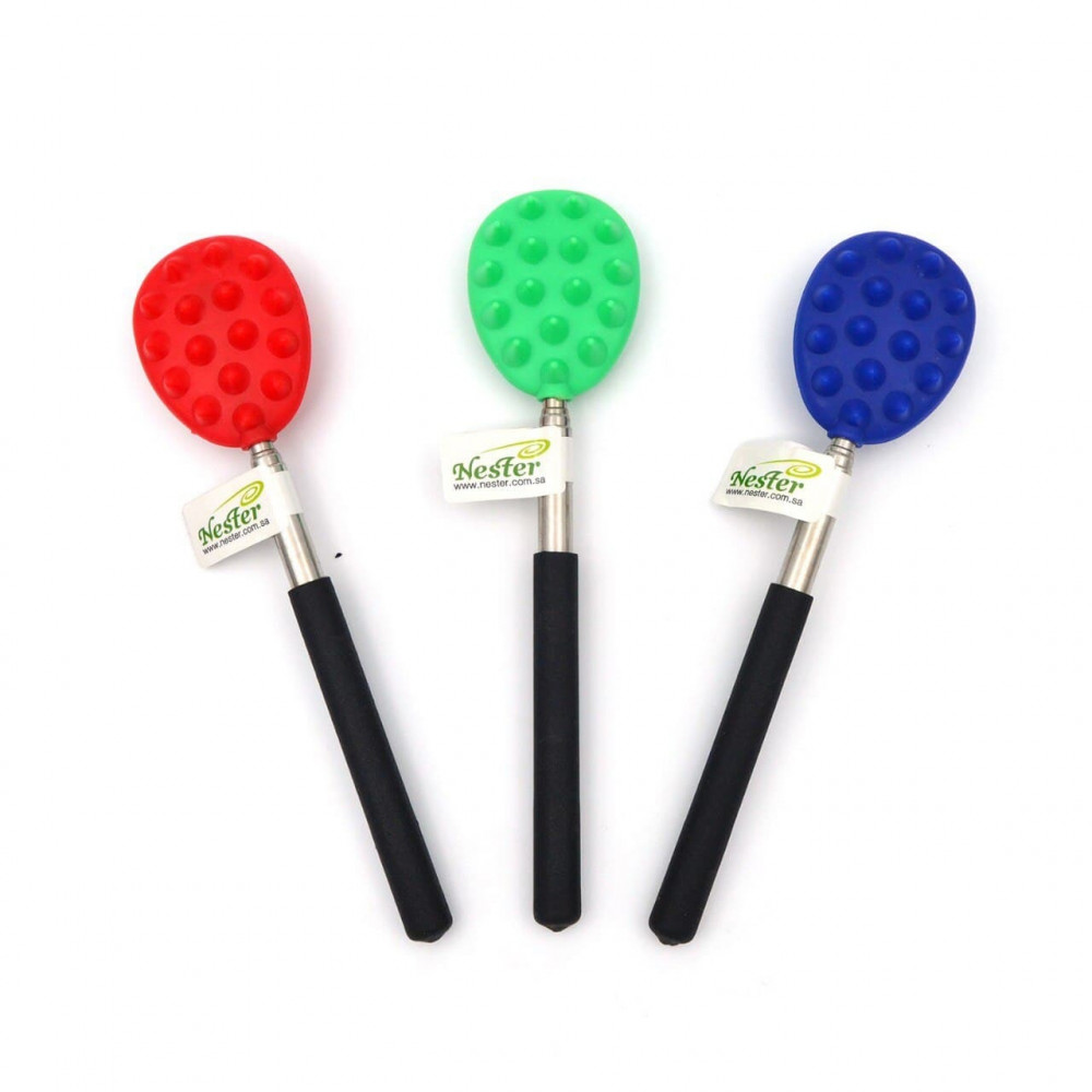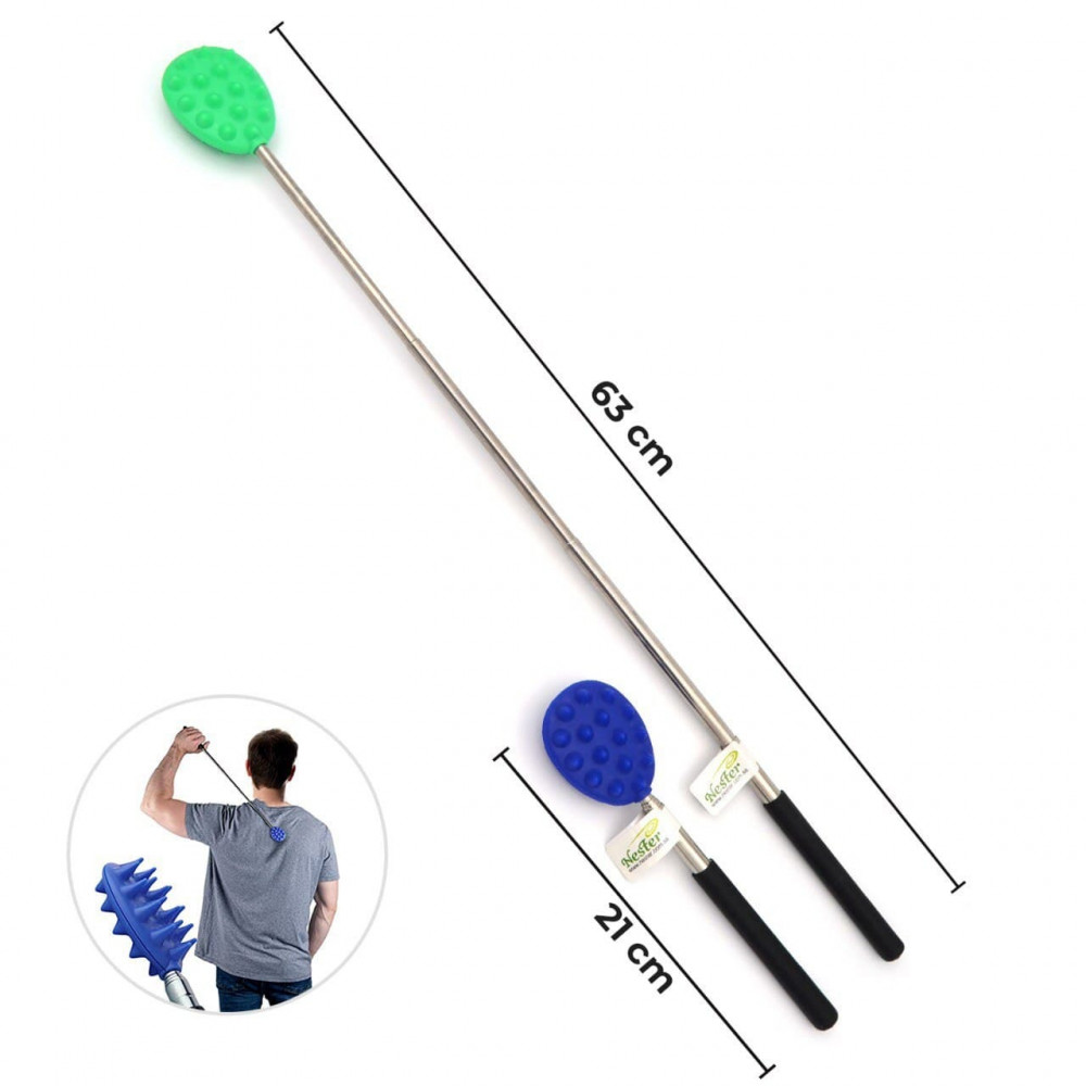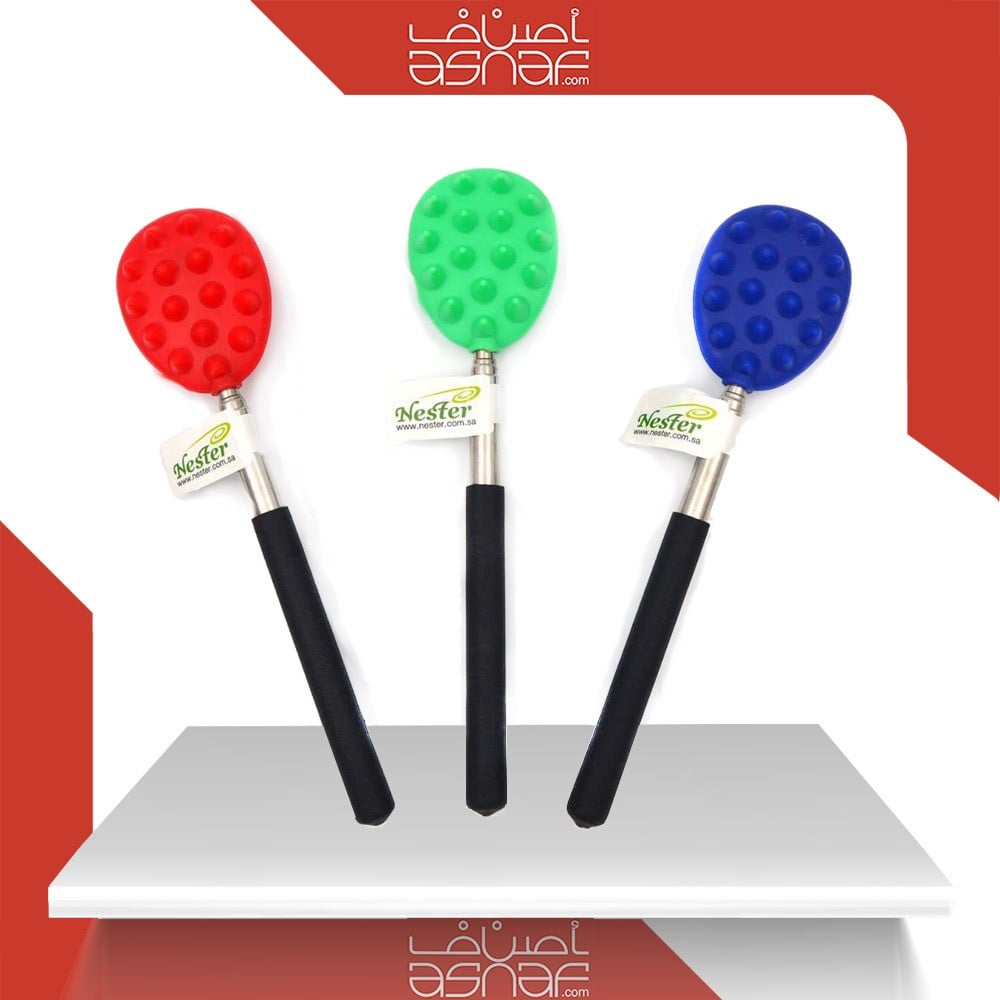 مزودة بمقبض مريح ومانع للانزلاق ، ورأس من البلاستك الناعم اللذي يحتوي على وجهين مختلفين من المسامير الخفيفه والقوية فهو آمن بحيث لا يسبب أية خدوش على الجلد، يمكنك حملها في أي مكان فهي صغيرة الحجم ويبلغ طولها 20 سم، وعند الاستعمال يمكنك اطالتها حتى تصل إلى 58سم.