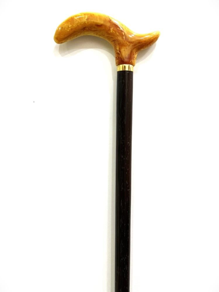 عصا عكاز من خشب الأبنوس بمقبض كهرمان – تصميم فاخر: