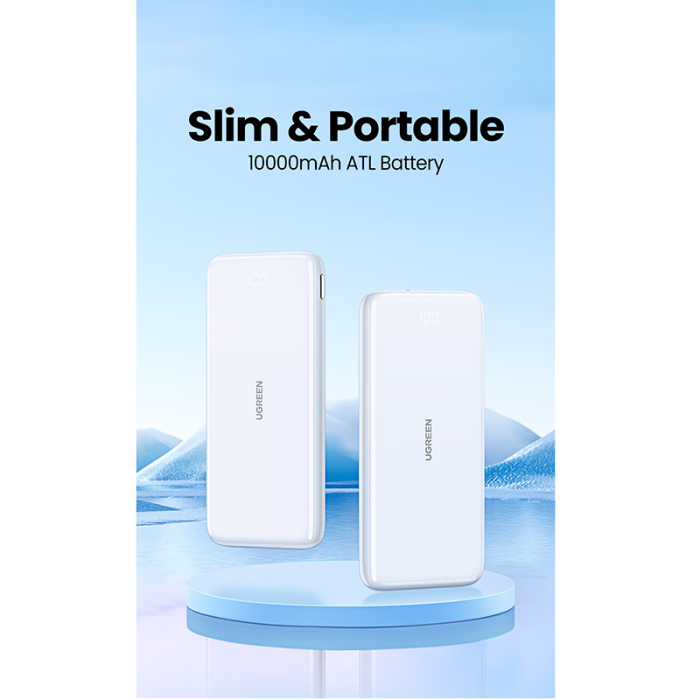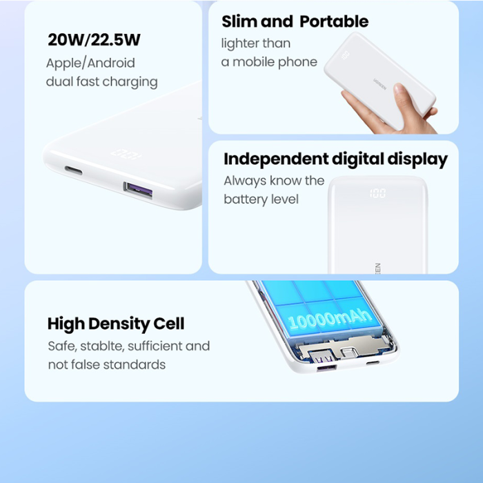 شاحن متنقل يوجرين الترا سليم بسعة 10000 مللي امبير بشحن سريع وبقوة 20 واط - أبيض